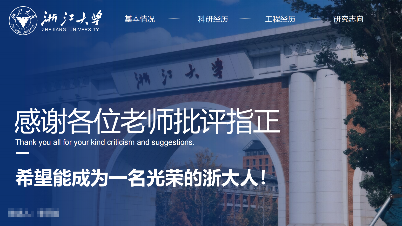 9.19面试的PPT要求9.16之前交。由于确实非常想去浙大,因此PPT是真的认真打磨了很久,并且在最后一页加了这样一句话:
